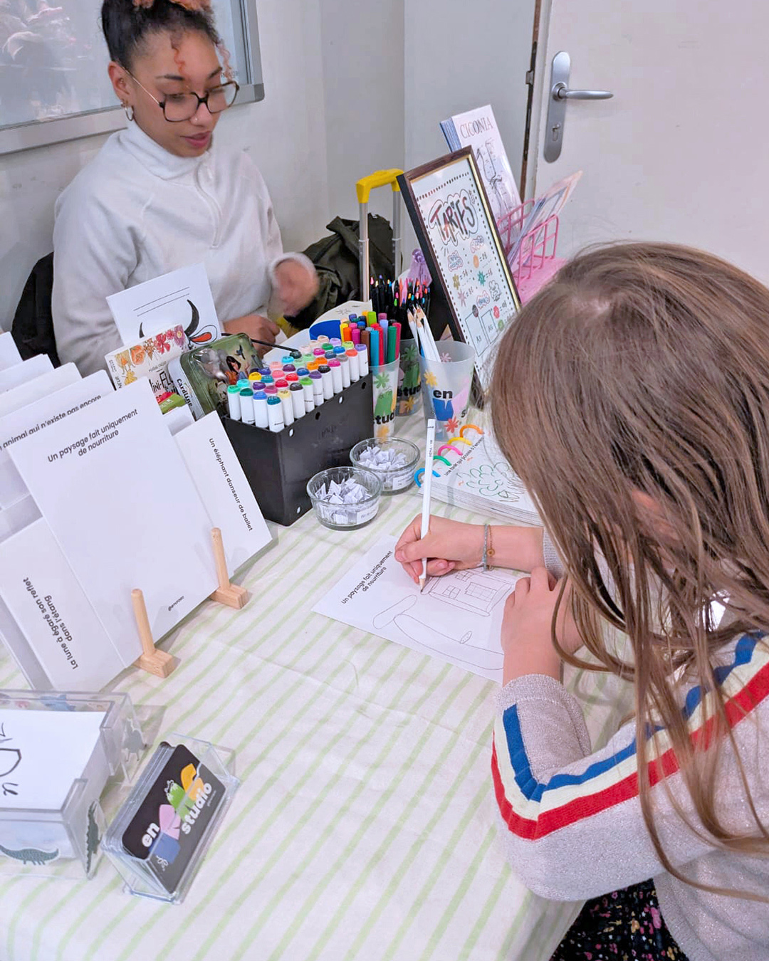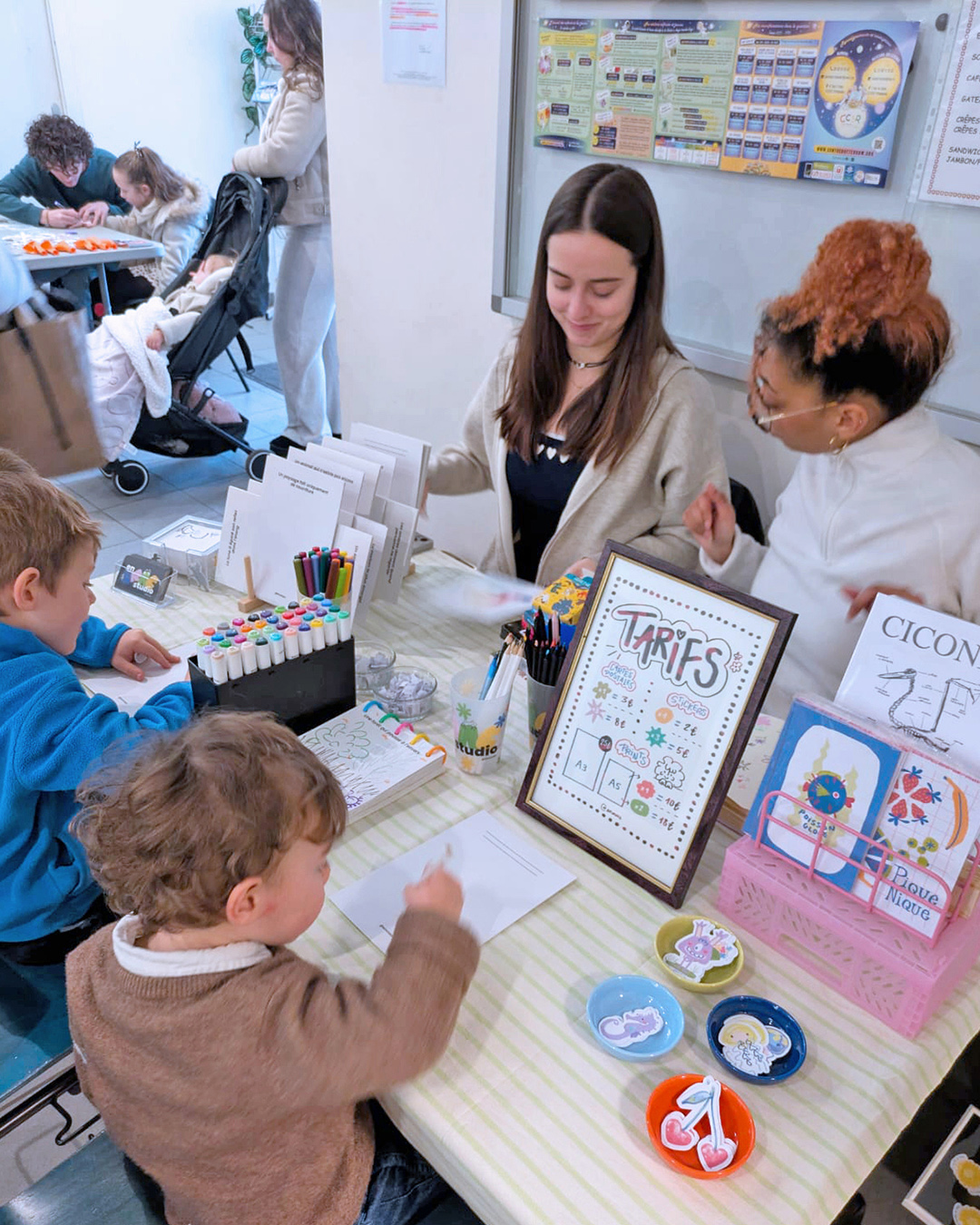 Les visiteurs ont également pu profiter de la petite restauration préparée par les bénévoles, tandis que les plus jeunes se sont émerveillés à l’espace coloriage et ludothèque. Et pour en prendre plein les yeux, un espace maquillage et tatouages éphémères était animé par Babychou, ainsi qu’un atelier d’illustration créatif animé par En Vrac Studio.