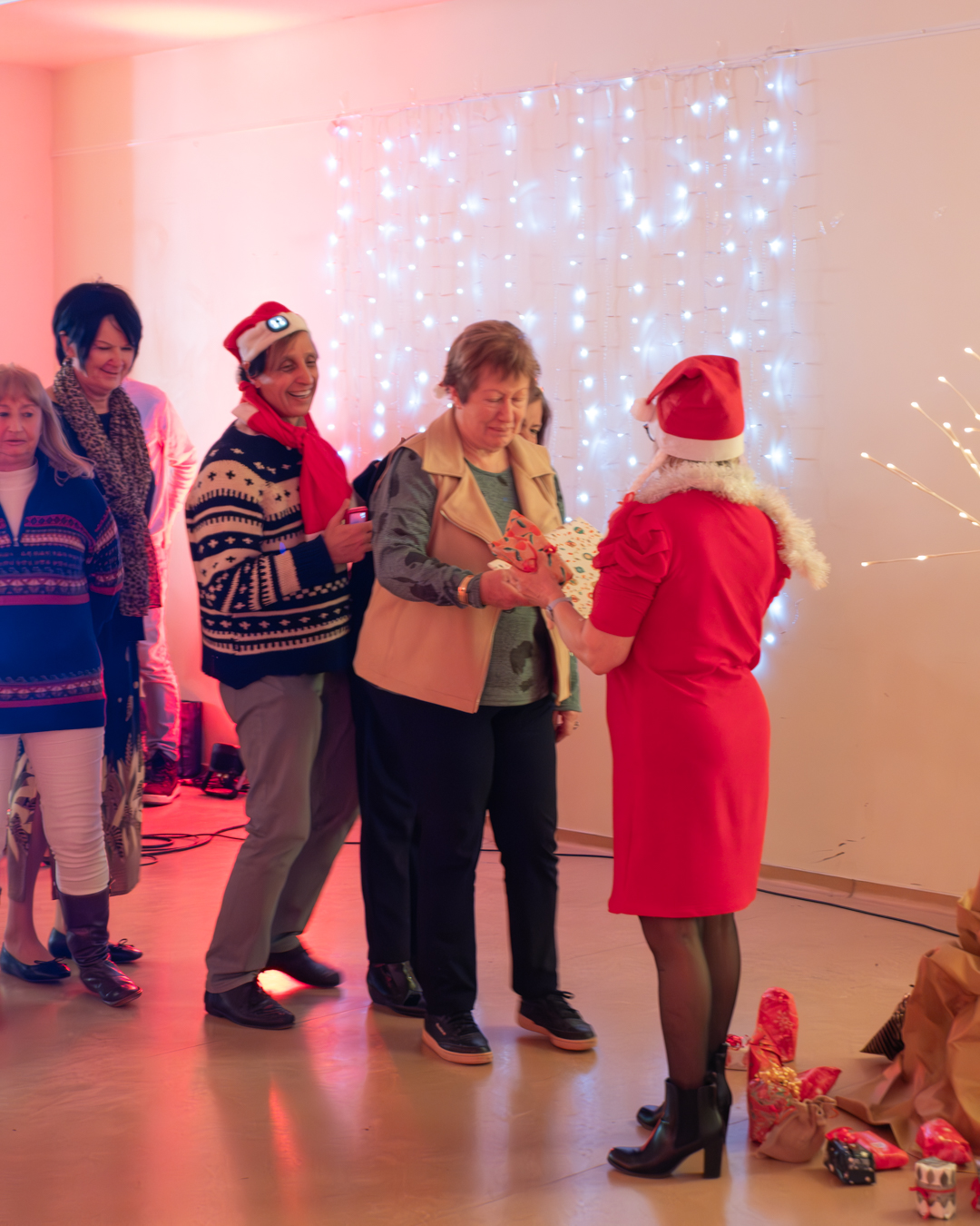 À midi, place à la gourmandise avec un repas de Noël très apprécié, composé de savoureuses bouchées à la reine et de la traditionnelle bûche. L’après-midi a ensuite laissé place à la magie avec la distribution des cadeaux par la Mère Noël : rires, surprises et joie étaient au rendez-vous !