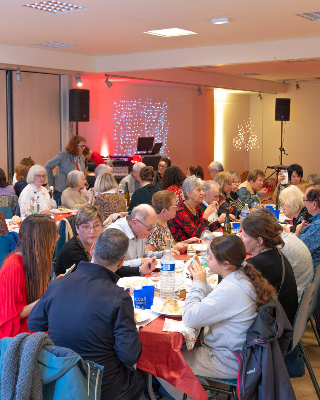 Dès 11h, de nombreux participants se sont retrouvés autour d’un apéritif festif plein d’enthousiasme et de bonne humeur, sans manquer de glisser leurs petits cadeaux sous le sapin, faisant monter l’ambiance et l’impatience.