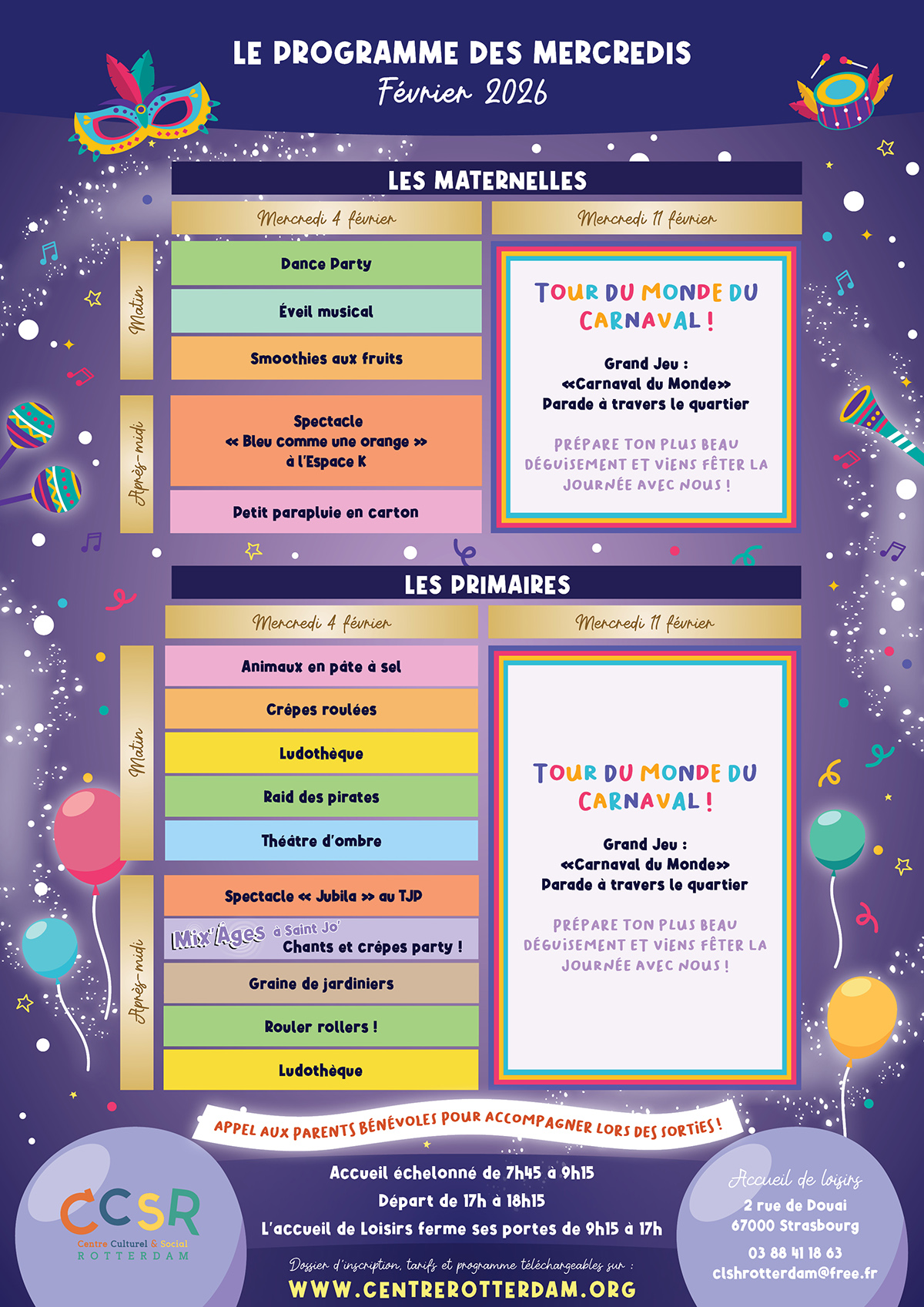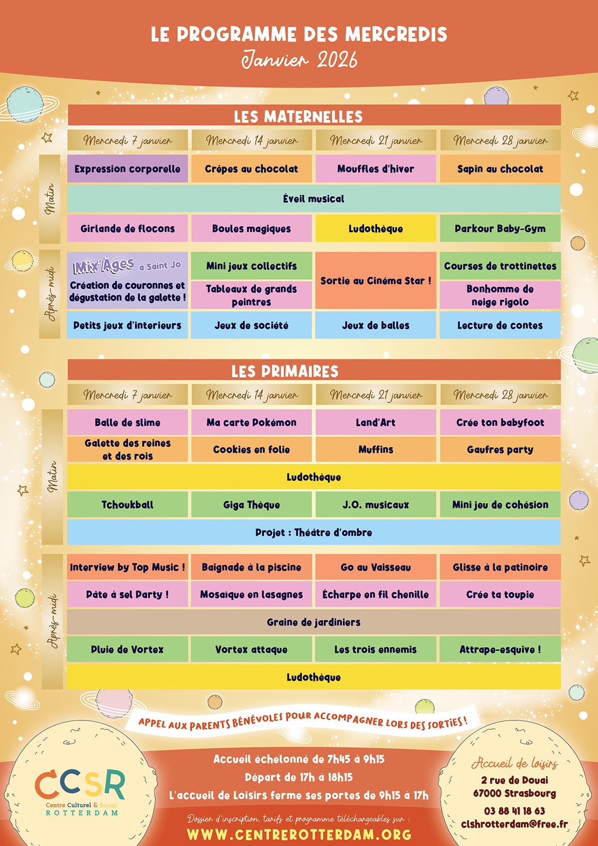 L’accueil de Loisirs est ouvert à vos enfants de 3 à 11 ans tous les mercredis dans l’École Élémentaire et Maternelle du Conseil des Quinze, et également les vacances scolaires pour vos enfants de 3 à 14 ans (sauf vacances de Noël, et du mois d’Août). Au programme : des activités de loisirs éducatifs et de détente, et des sorties variées et adaptées !