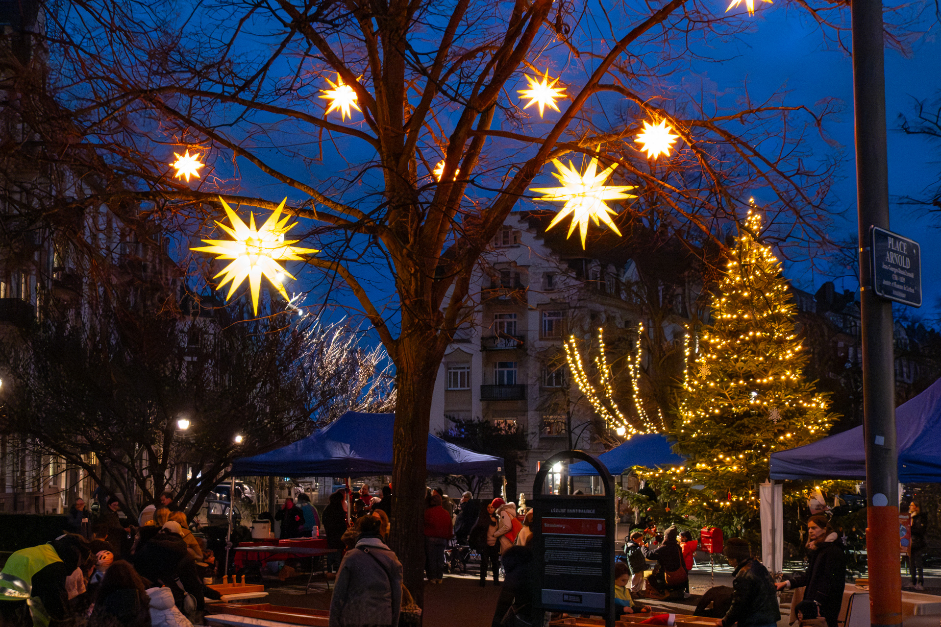 Sapin participatif en images : rencontres chaleureuses et place Arnold lumineuse !